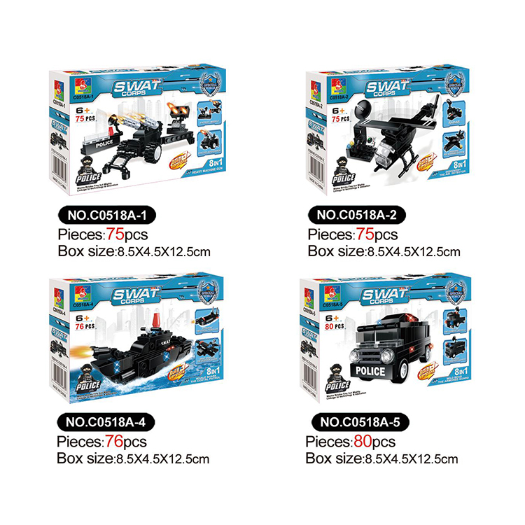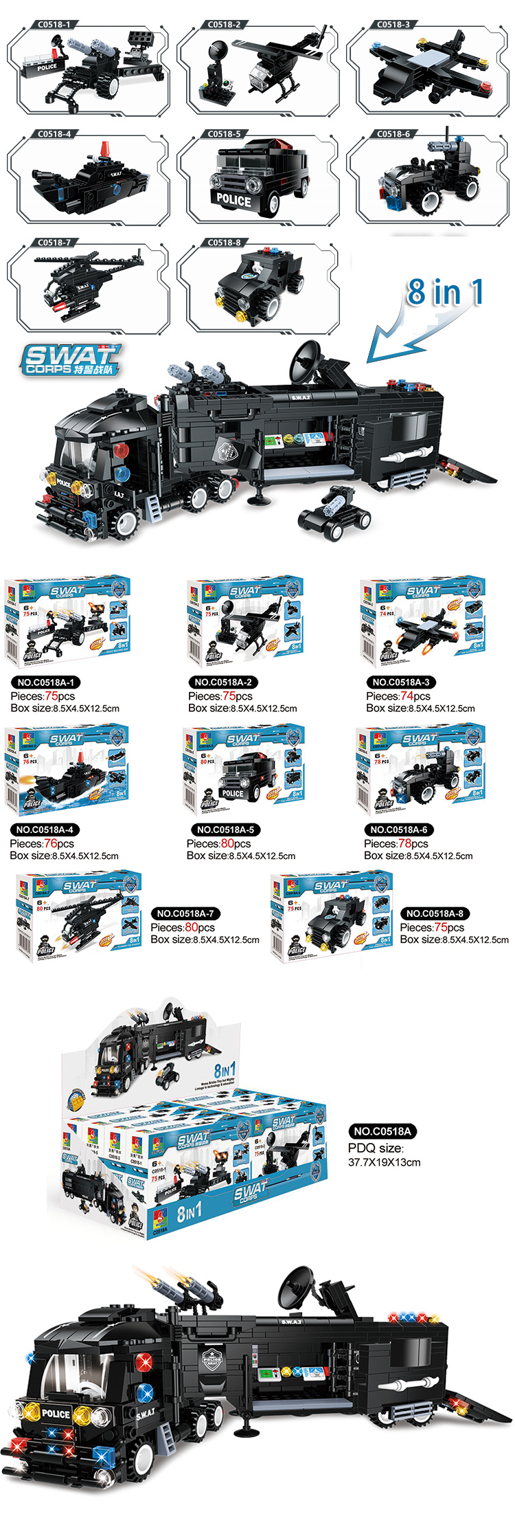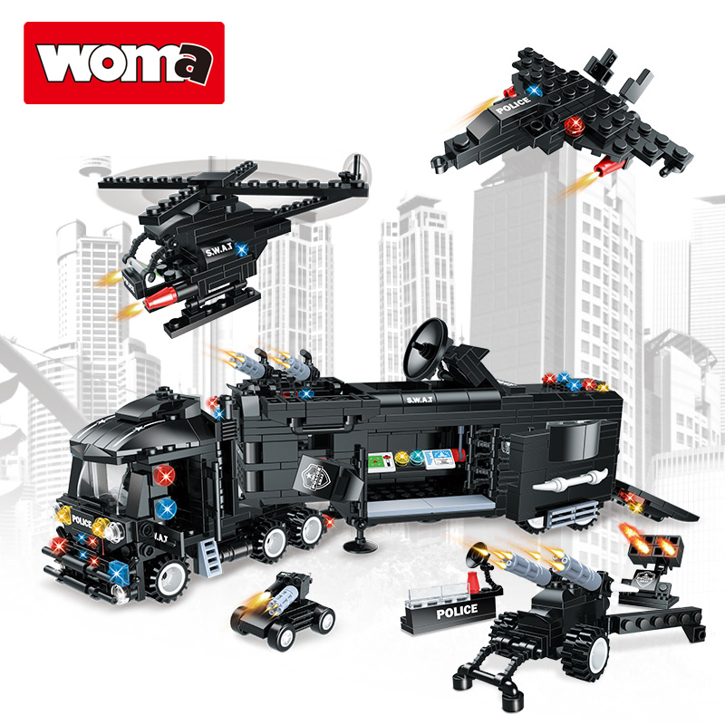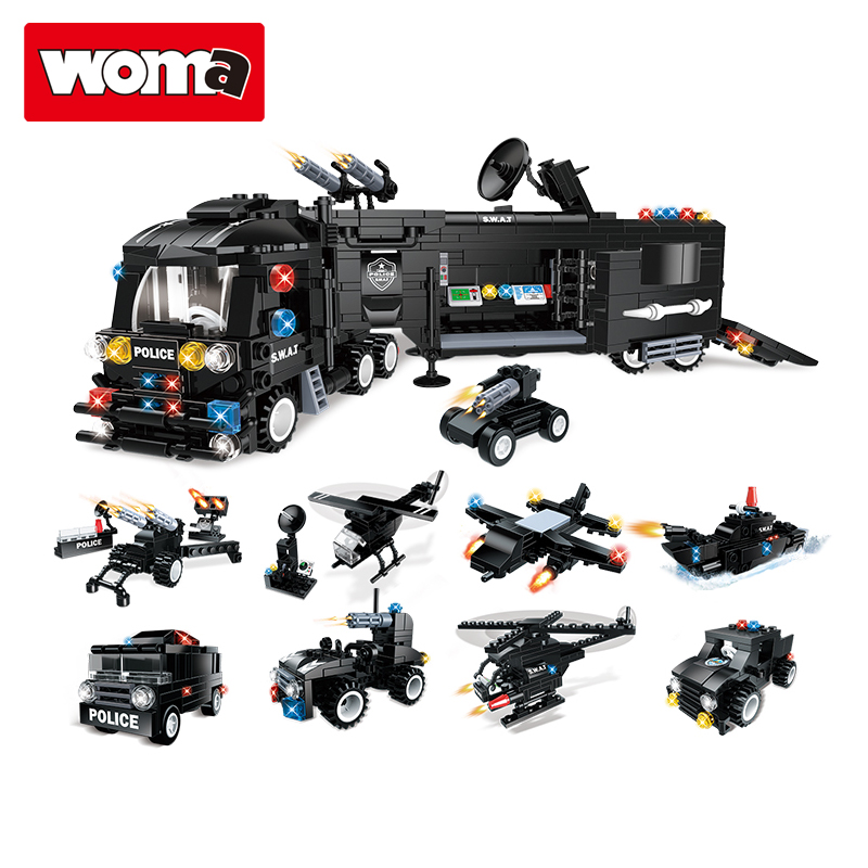 WOMA TOYS SWAT Team 8 In 1 Car Plain Boat Educational Small Building Blocks Toys Set DIY Bricks