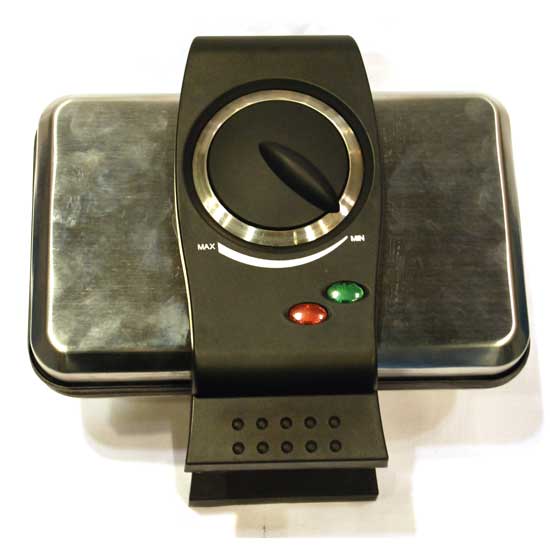 This waffle maker is equipped with non-stick cooking plates for easy cleaning. The cover features a large rotary temperature-control knob. Make delicious waffles with this easy-to-use waffle maker.