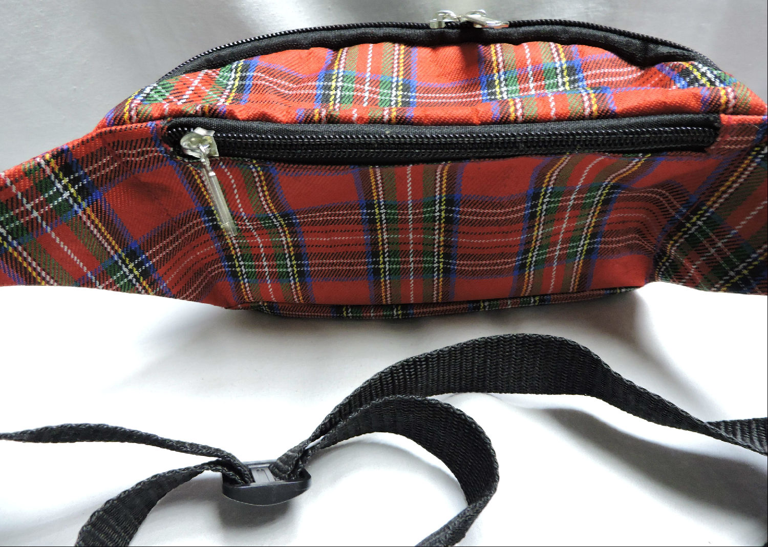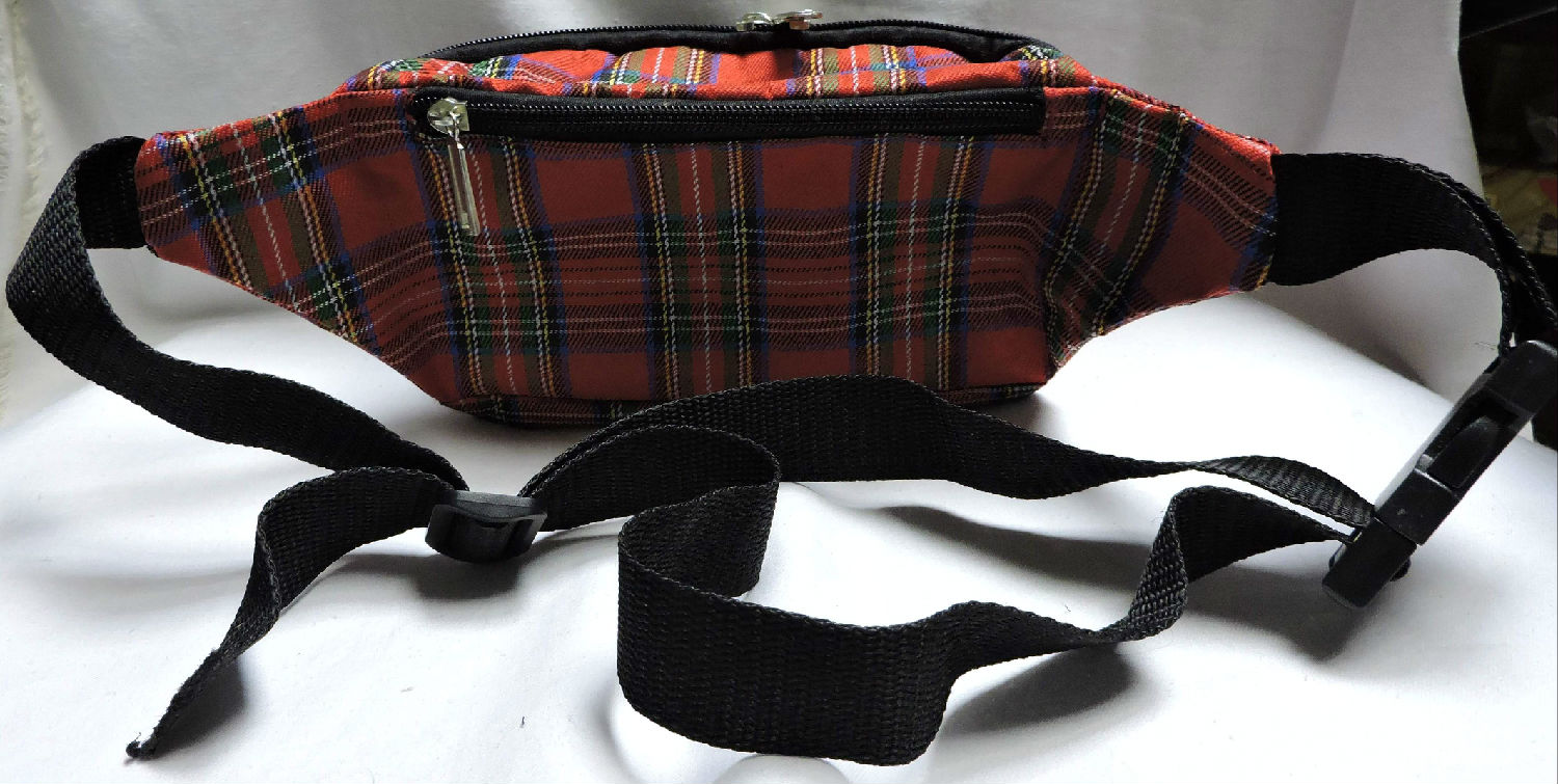 Quality waist bag(fanny pack) made in 300CVC checker and 420D with 210 lining inside, with 3 zippered compartments, with plastic buckle adjustable woven waistband.