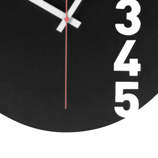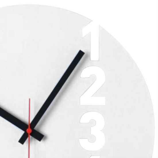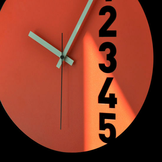 - Simple monochromatic wall clock with cutout san-serif typeface.