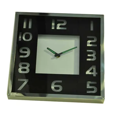 This wall clock exhibits a square style. It features a dial with black edges for a special touch. The two hands come with glowing abilities. The slim square bezel boasts a glossy finish.