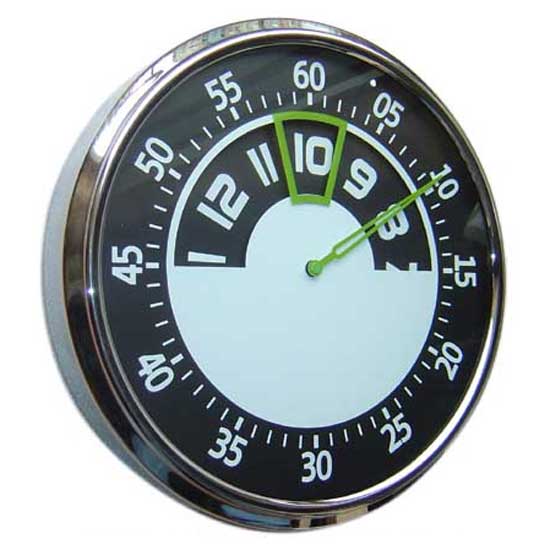 This wall clock boasts a contemporary design with a black-and-white dial. The hour and minute are shown in a unique way for easy reading. The metal case comes with a shiny touch to look exceptionally cool for modern households.