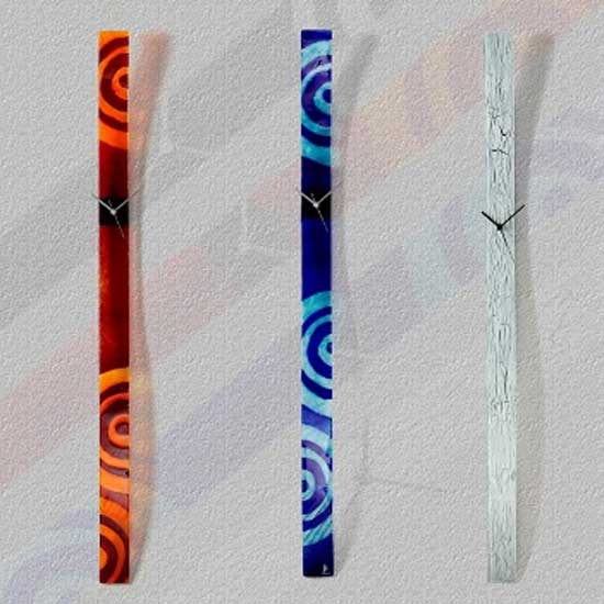 Displayed here is a wall clock with an analog movement. Featuring a long and slim silhouette, this wall clock saves space. Embellished with well-designed patterns, this wall clock showcases a delicate touch.