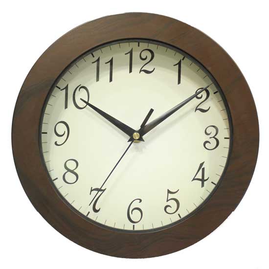 Outlined here is a traditional round-shaped clock with hour, minute and second hands. The large-size Arabic numeral hour markers allows easy time reading. Flaunting an ABS frame with wooden pattens, the featured round clock showcases a simple yet chic touch.