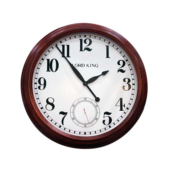 This quartz analog wall clock is designed in a circle shape. The white dial comes with three hands and 12 Arabic numeral hour markers for easy time reading. This wall clock is finished with a sub-dial for added functionality.