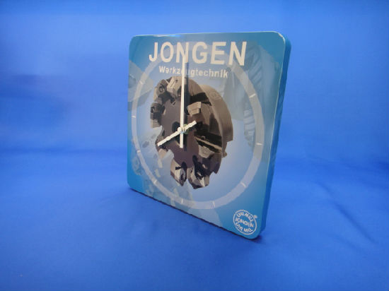 This practical yet stylish clock is made into a unique square shape with rounded corners. Coming without a cover, the wall clock has a printed dial with subtle hour markers. It features two white watch hands to indicate time, while the tin construction lends a rustic touch.
