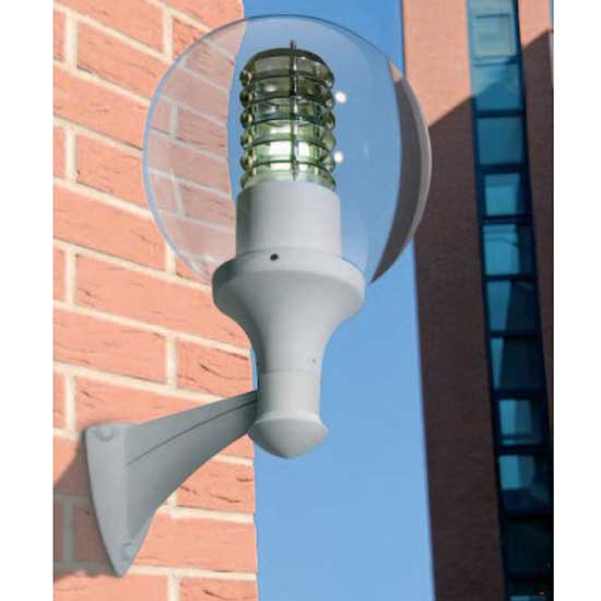 The LED wall lamp bestows a transparent globe lampshade with a sturdy arm. The futuristic design adds a touch of style. This fantastic wall lamp is perfect for outdoor applications.