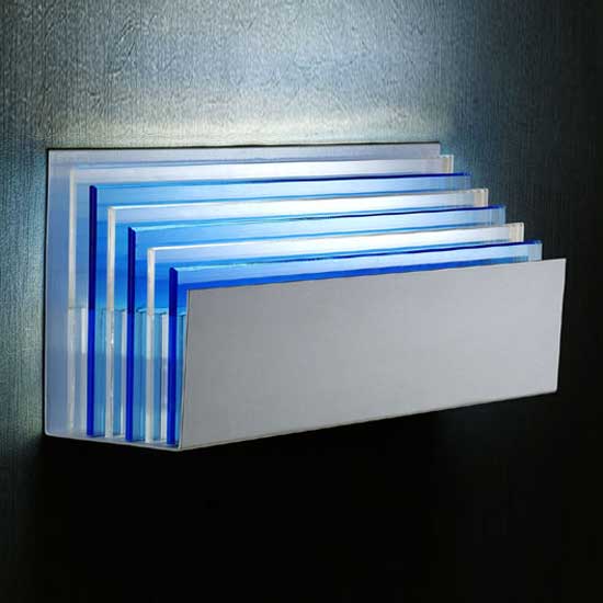 The wall lamp features metal construction with transparent PMMA inner panels lining up in assorted sizes. The light diffuses through the PMMA panels to create a captivating atmosphere. This wall lamp also features music playing function. Illuminate the aisle or corridor with this wall lamp.