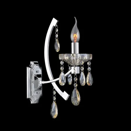 This wall lamp boasts a trendy yet deluxe design. It features a streamlined and artistic main structure with two candlestick-like heads. This lamp is decorated with sparkling crystal chains, dazzling charming luster.