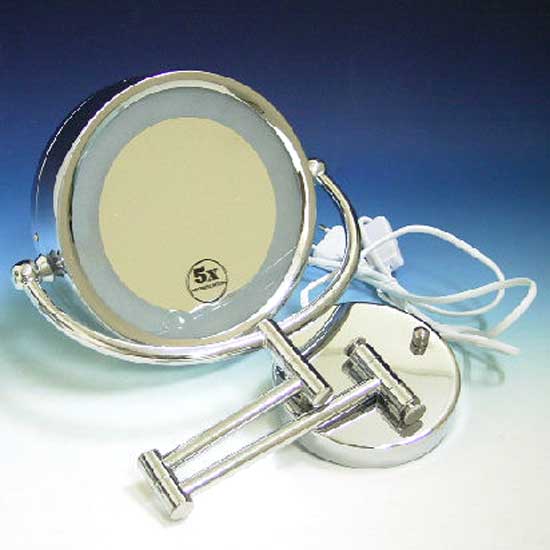 This is a wall-mounted LED mirror that comes with all the mounting hardware for easy installation. The built-in LED bulbs are lined around the mirror to distribute light evenly. This LED mirror is used in luxury hotels due to its added convenience.