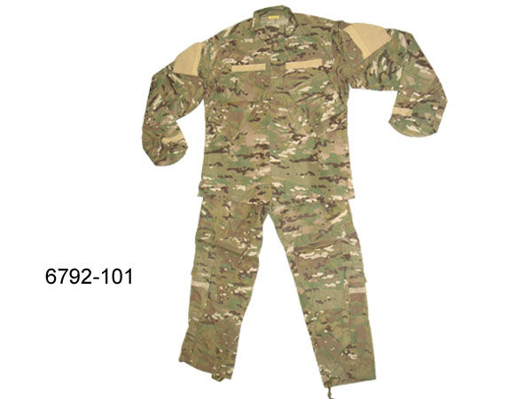 Highlighted here is a set of uniform for wargame wearing. It includes a long-sleeved top with chest and sleeve pockets and a pair of full length pants. The uniform comes in camouflage colors and is perfect for avoiding getting noticed while playing wargames.