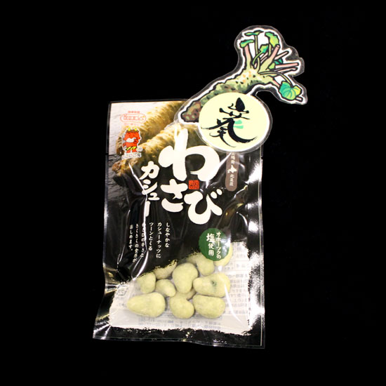 The displayed dried beans originates from Hokkaido, Japan, It is well mixed with wasabi flavor for a spicy taste. This packed wasabi beans can be enjoyed anytime, anywhere.
