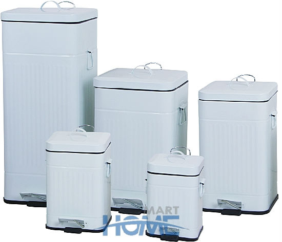- The waste bin is made of galvanize finish metal construction for a touch of style. The closed lid stops the spreading of unpleasant odors from the trash. This waste bin is Just step the broad external foot pedal for hands-free lid opening, the lid will automatically close and seal well with body. Ideal for homes of any sizes with patent design.
