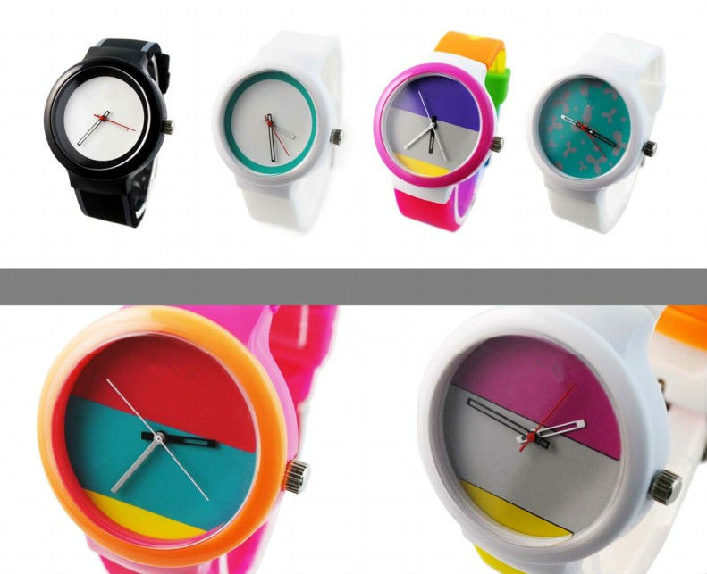Plastic case, silicone strap.