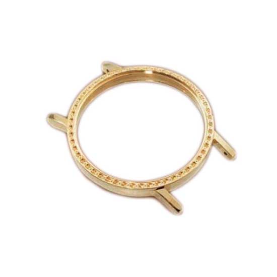 Outlined is a watch bezel that comes with an electroplating layer for lasting beauty. With embedded diamonds, this watch bezel showcases a touch of uniqueness. This ornamental watch bezel adds an artistic flavor to fashion timepieces.