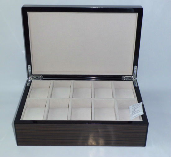 Featured is a sophisticated watch storage box with divided watch compartments and cushions to avoid scratches and dust. The hinged window lid allows a good view of the interior. Keep your watches new and protected with this watch storage box.