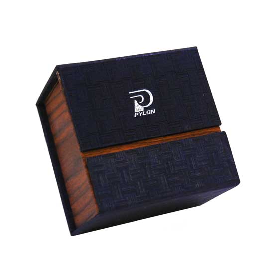 This is a paper watch box that comes with a robust structure. It is finely crafted with a wooden pattern for extra style. This watch box also features delicate logo prints on the top.