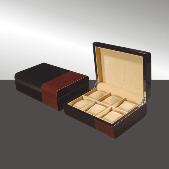 This watch box comes with a stylish and elegant design. It can store 6 watches at a time. This fashionable watch box is made of quality materials for a long service life.
