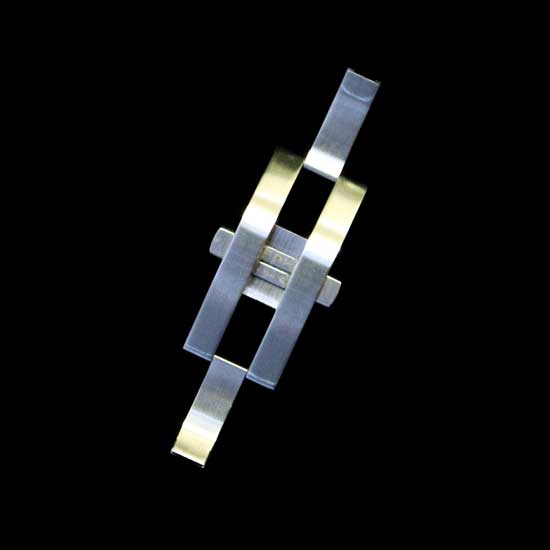 Displayed is a butterfly-type buckle for watch straps. Made of 317 stainless steel, this buckle is robust with a matte metallic finish. This watch buckle is durable and has a long service life.
