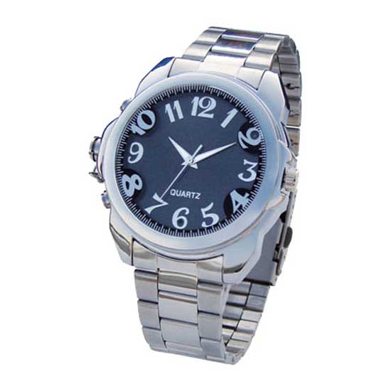 The stainless steel watch DV comes with video and voice recording functions. It features a built-in high-quality 0.3-megapixel camera. This watch DV is powered by built-in lithium battery for a continuous recording time of 2 hours.