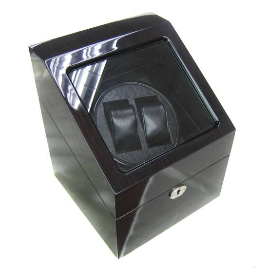 This watch winder is made of quality wood with high durability. It can store 2 watches with a glass lid for easy viewing. The box has a lock for safely keeping watches inside.