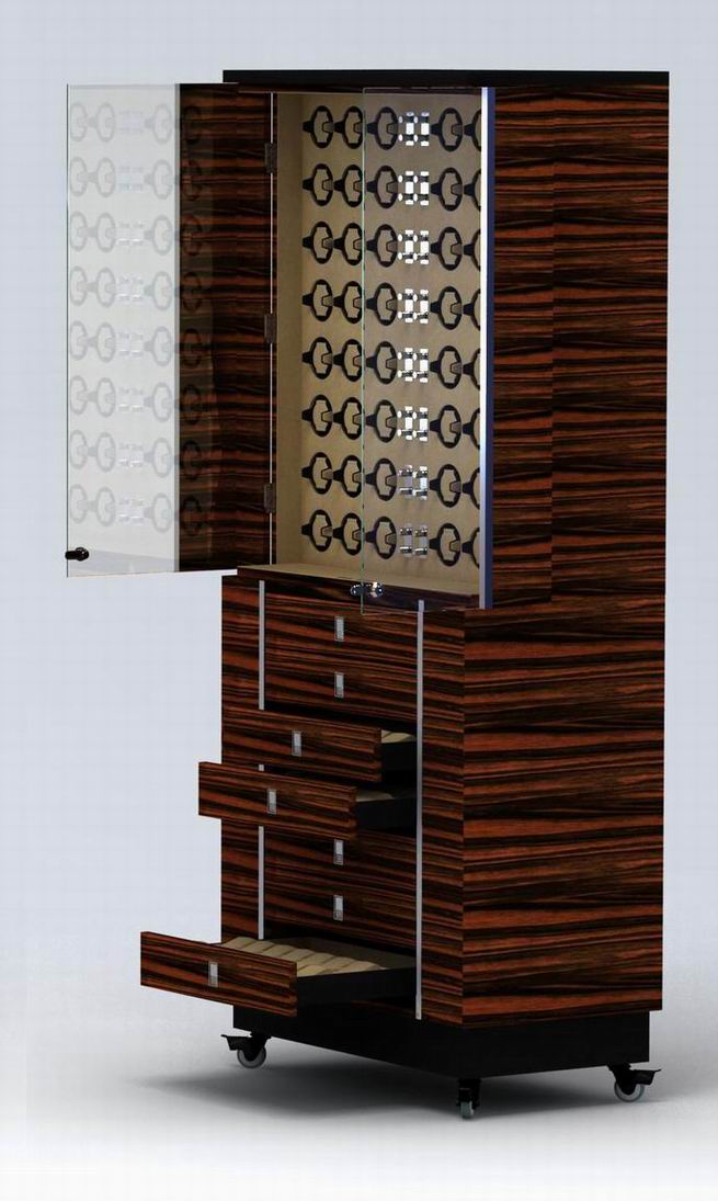 • Materials: ebony wood with piano finish, high quality fabric inside.