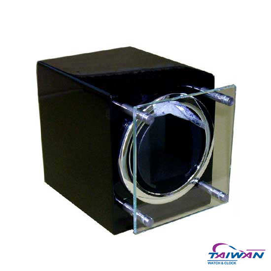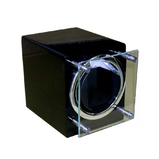 Get this cubic watch winder to keep a single mechanical watch. The housing features black lacquer finish all over to exude sophisticated elegance, while the clear cover across the front shields against water splash and offers a great display of the timepiece.