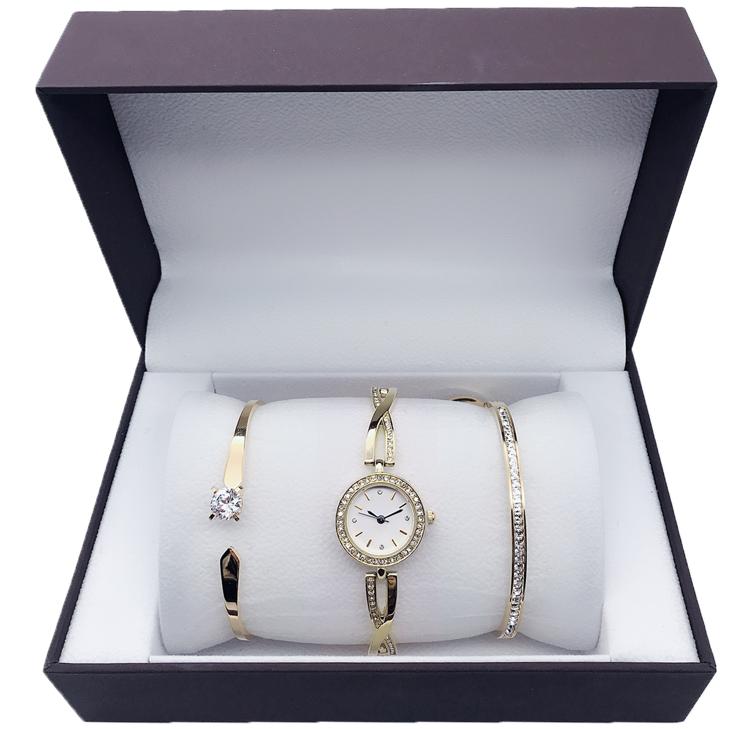 • Highlighted here is a set of Ladies fashion Watch with an alloy Case & Band and Stainless Steel Jewelry with good long lasting plating. Different models and colors of bracelet & bangle jewelry are available. Feel free to change the combination of the Gift set from our collection in your respective orders.