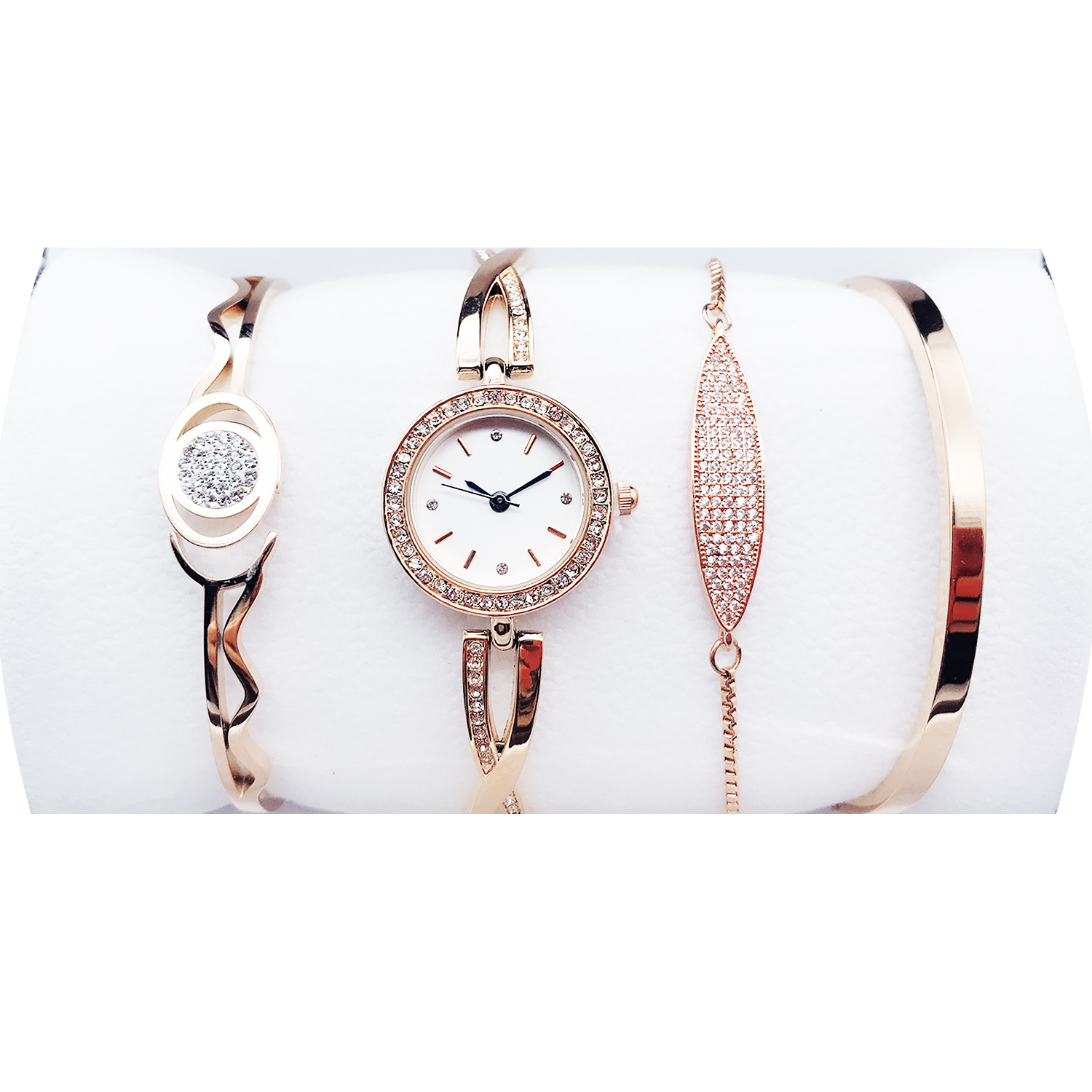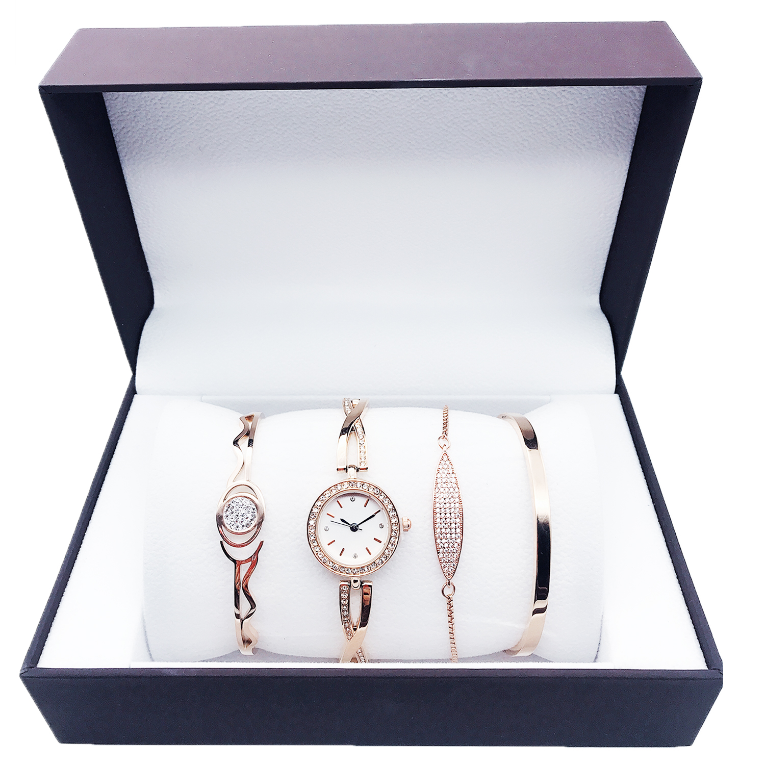 • Highlighted here is a set of Ladies fashion Watch with an alloy Case & Band and Stainless Steel Jewelry with good long lasting plating. Different models and colors of bracelet & bangle jewelry are available. Feel free to change the combination of the Gift set from our collection in your respective orders.