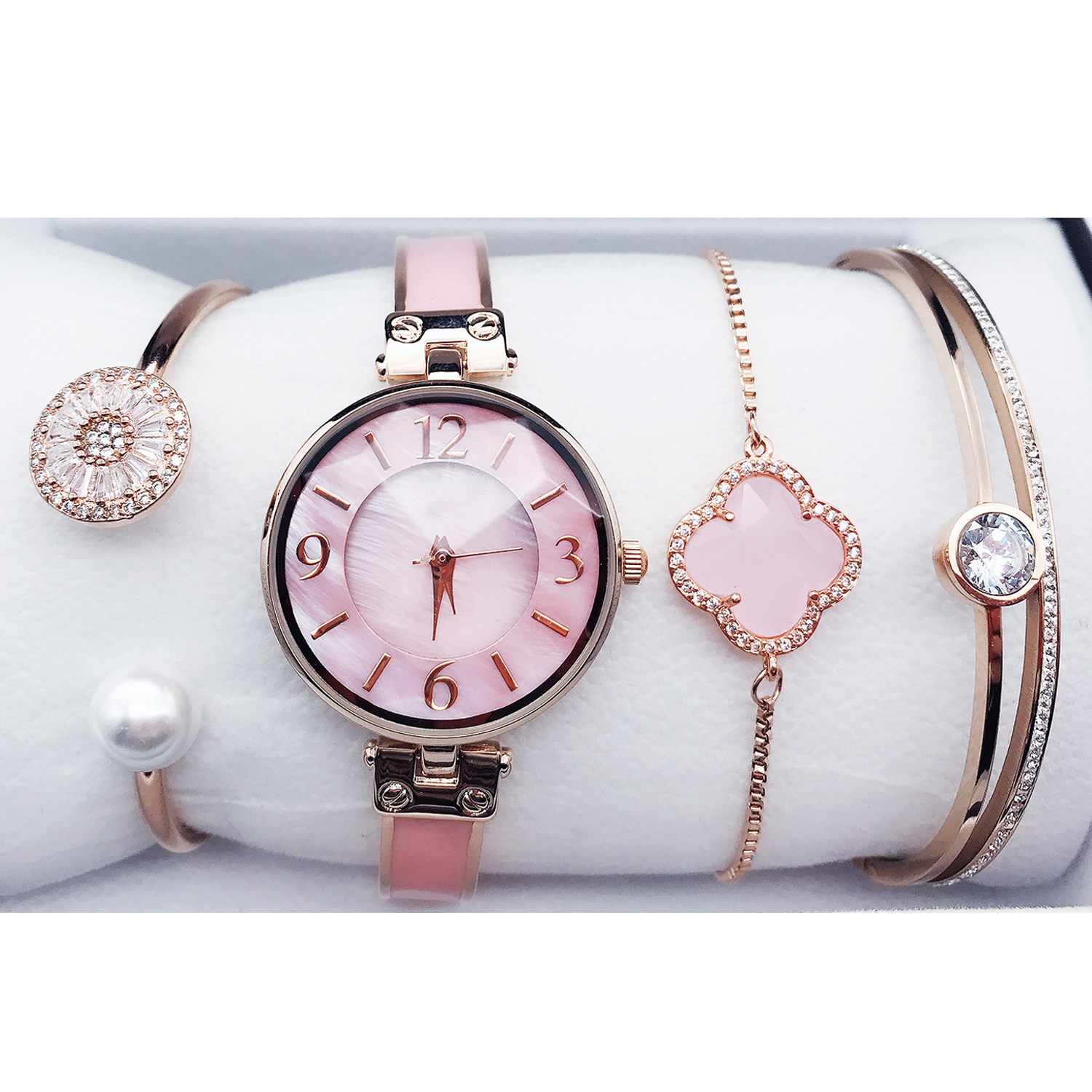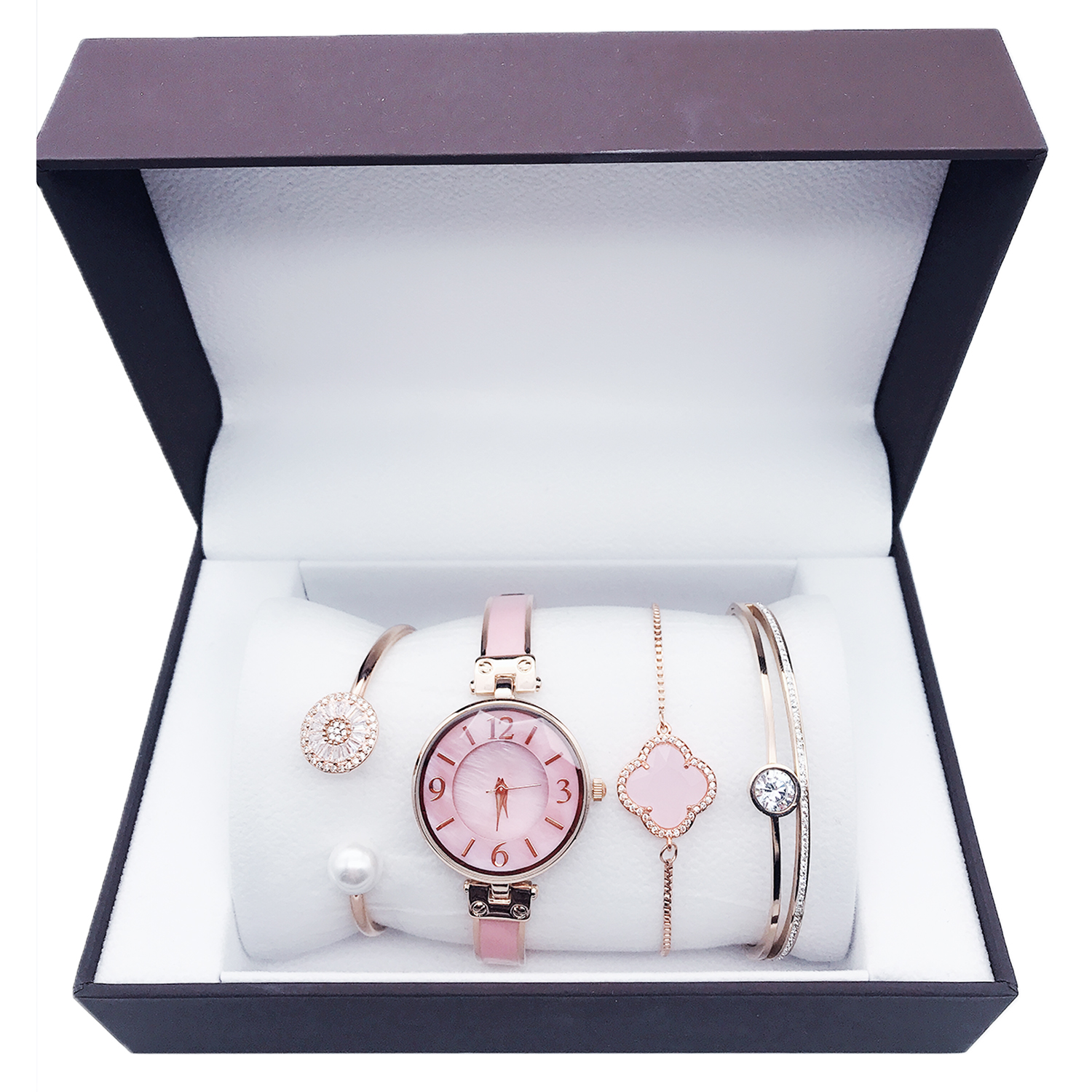• Highlighted here is a set of Ladies fashion Watch with an alloy Case & Band and Stainless Steel Jewelry with good long lasting plating. Different models and colors of bracelet & bangle jewelry are available. Feel free to change the combination of the Gift set from our collection in your respective orders.