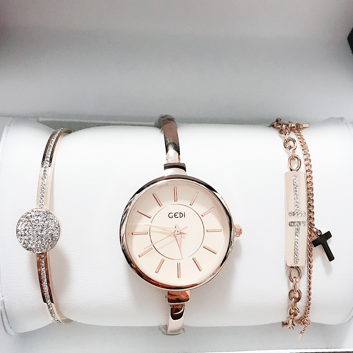 • Highlighted here is a set of Ladies fashion Watch with an alloy Case & Band and Stainless Steel Jewelry with good long lasting plating. Different models and colors of bracelet & bangle jewelry are available. Feel free to change the combination of the Gift set from our collection in your respective orders.