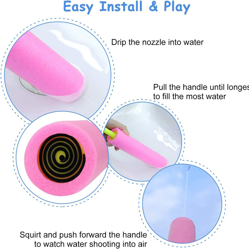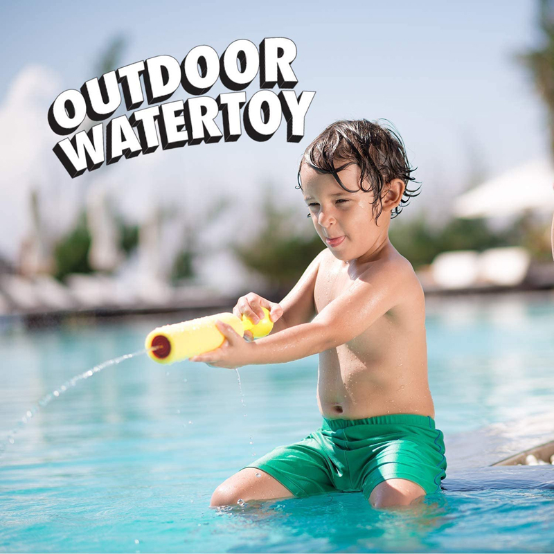 1.EASY TO REFILL WATER GUN SOAKER: These foam water guns could be used in any place. Pull back the handle to load the cannon with water, take aim, and force the handle forward to blast water at your opponent or target. Every water fight is child's play and your opponents have to be careful. Drench your friends 6-8 m away with the cool water pistol.