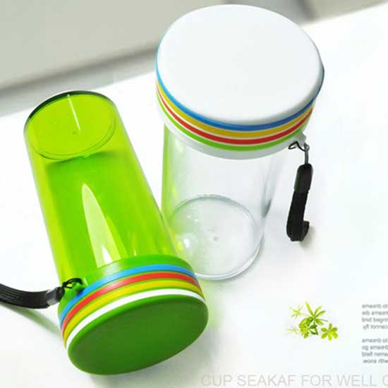 Displayed is a water bottle that comes with a colorful design. Made of high quality materials, this water bottle is able to hold your drink without spilling or leaking. This water bottle is protected by patent for your assurance.