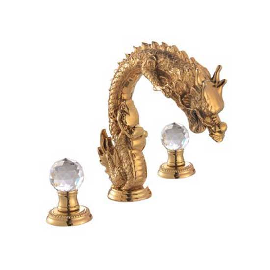 The water faucet steals the spotlight with a gorgeous golden dragon design. This skillfully-crafted legendary creature fills its surroundings with a potent and auspicious air. It is seamlessly matched with two stunning crystal-clear handles.