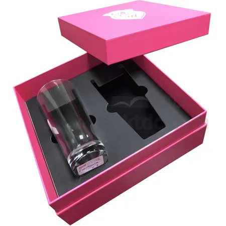 • Remarks: this box is designed for water glasses packing. In order to secure glasses, there is making a paper platform with die-cut the shape to fit with pair of glasses, placing 5mm foam at bottom on top respectively of inside outer box to protect glasses in further.