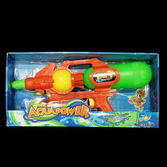 The water gun features strong shooting power that covers a far-reaching distance. The durable plastic construction offers years of guaranteed play. This water gun makes a great toy for pool, beach or backyard fun.