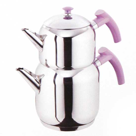 The water kettle here features a stackable design for an extended capacity. The stainless steel body is exceptionally sturdy and durable. The knob and handles come in pink to look adorable for modern kitchens.