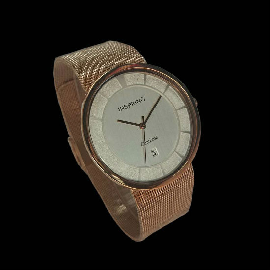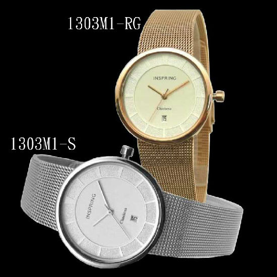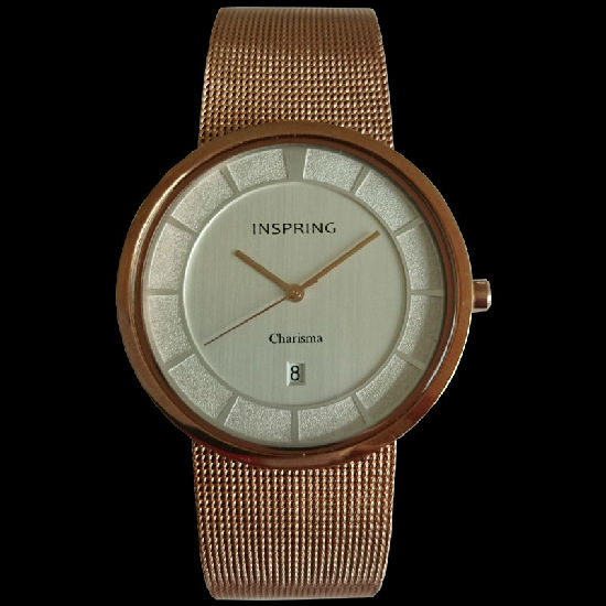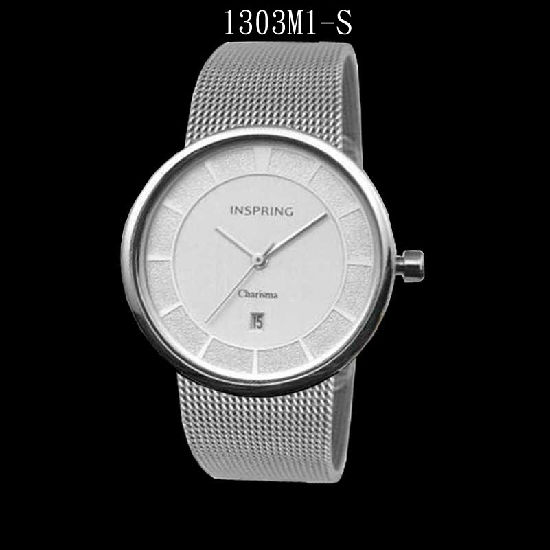 3-hand date men's quartz analogue watch, slim look stainless steel case and mesh band