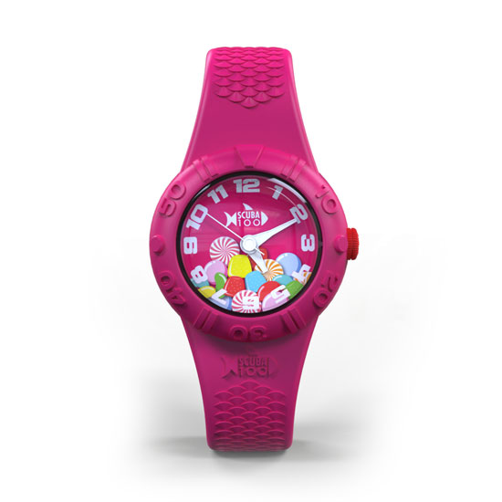This water-resistant watch is designed in dark red for an eye-catching look. It comes with a round dial, three hands and 12 Arabic numeral hour markers for easy time reading. The dial is designed in multiple colors for a touch of style.