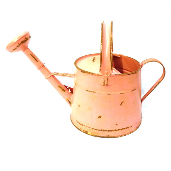 This watering can is constructed with metal for a rugged quality. Its surface is scattered with deliberate rust for a touch of style. This can is also completed with an ample capacity.