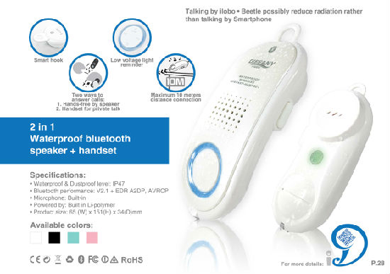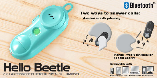 This Bluetooth speaker handset allows you to listen to music and makes phone calls. The device feature delivers quality sound and receives voices clear. It is sturdily constructed for a long service life. The speaker housing can be floating on the water.