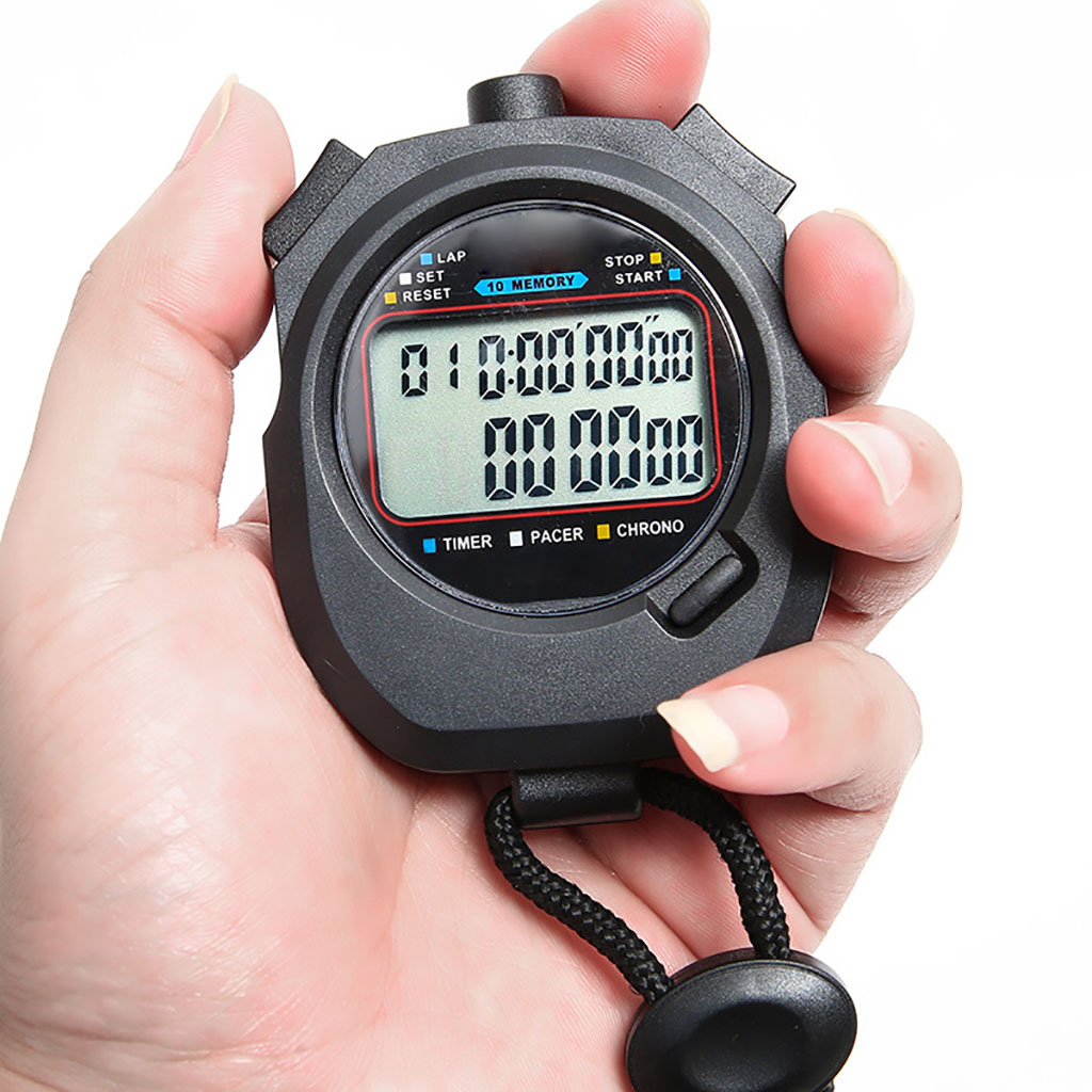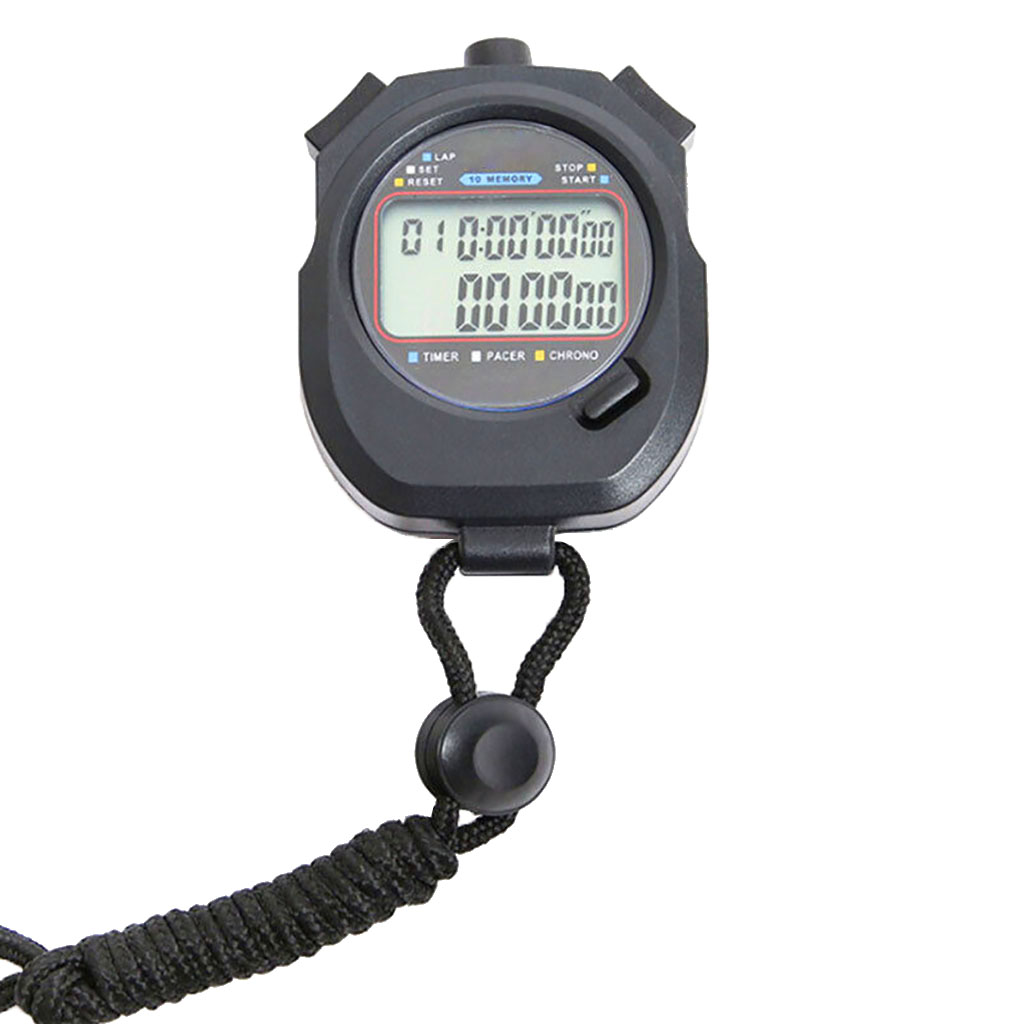 Waterproof Digital Stopwatch Timer with 2 Row Display and 10 Memory Settings includes the following features :