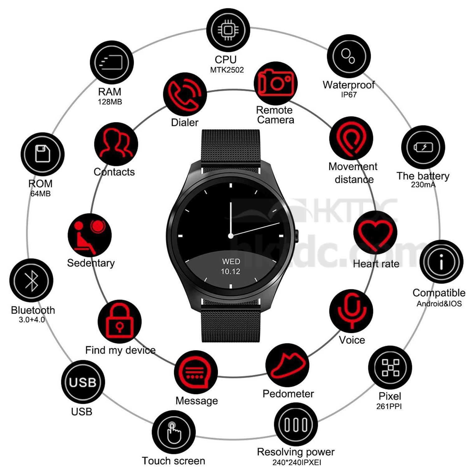 More function: Not only a watch, it can also use as a Heart Rate Monitor, Sleep Monitor, Step/ Distance/Calories Counter, Sedentary Reminder, Call&SMS Reminder, Camera&Music Controller,etc.