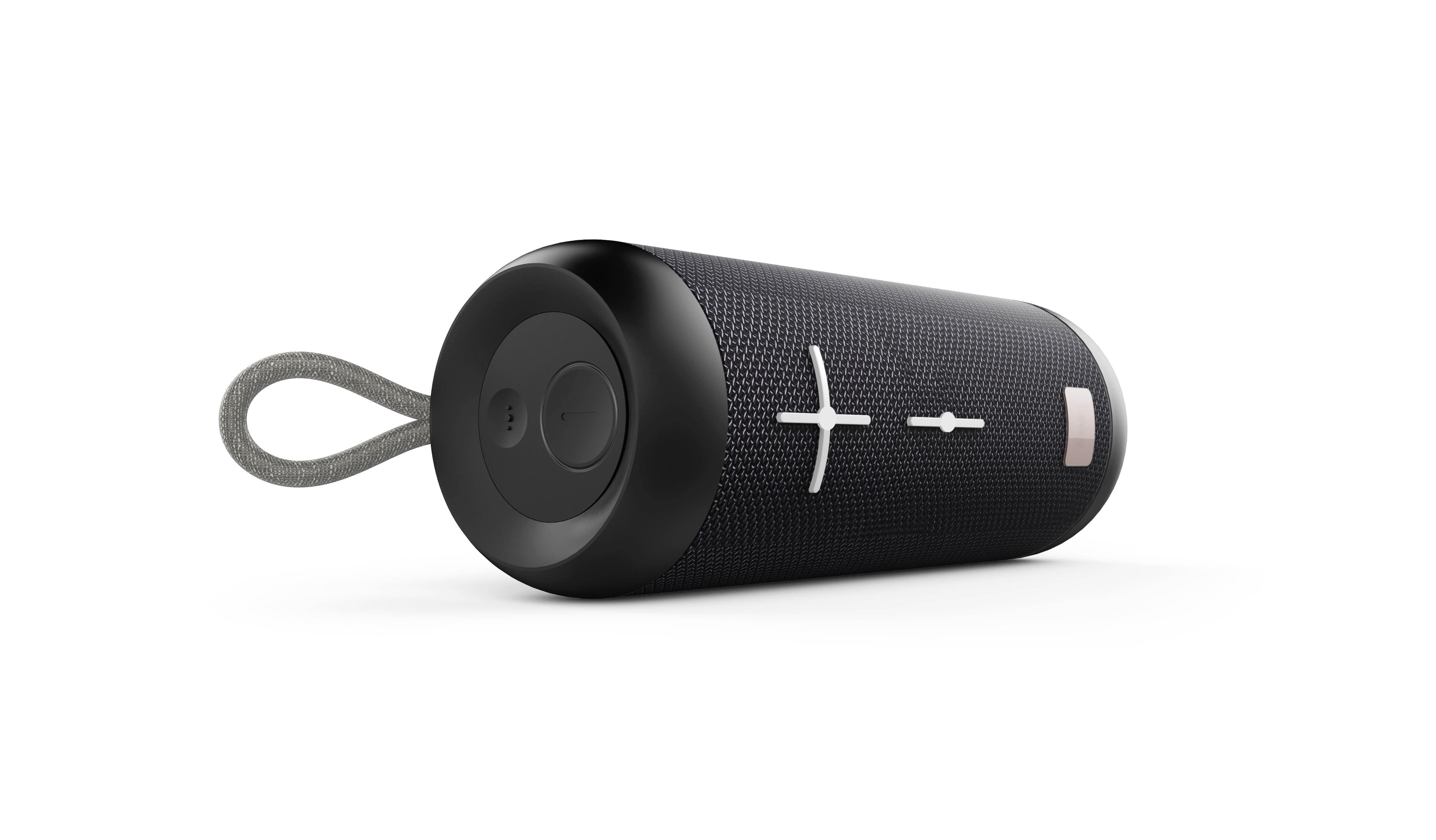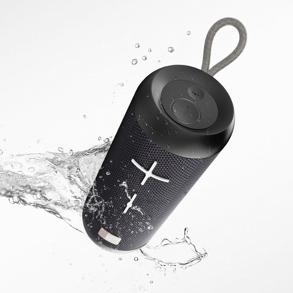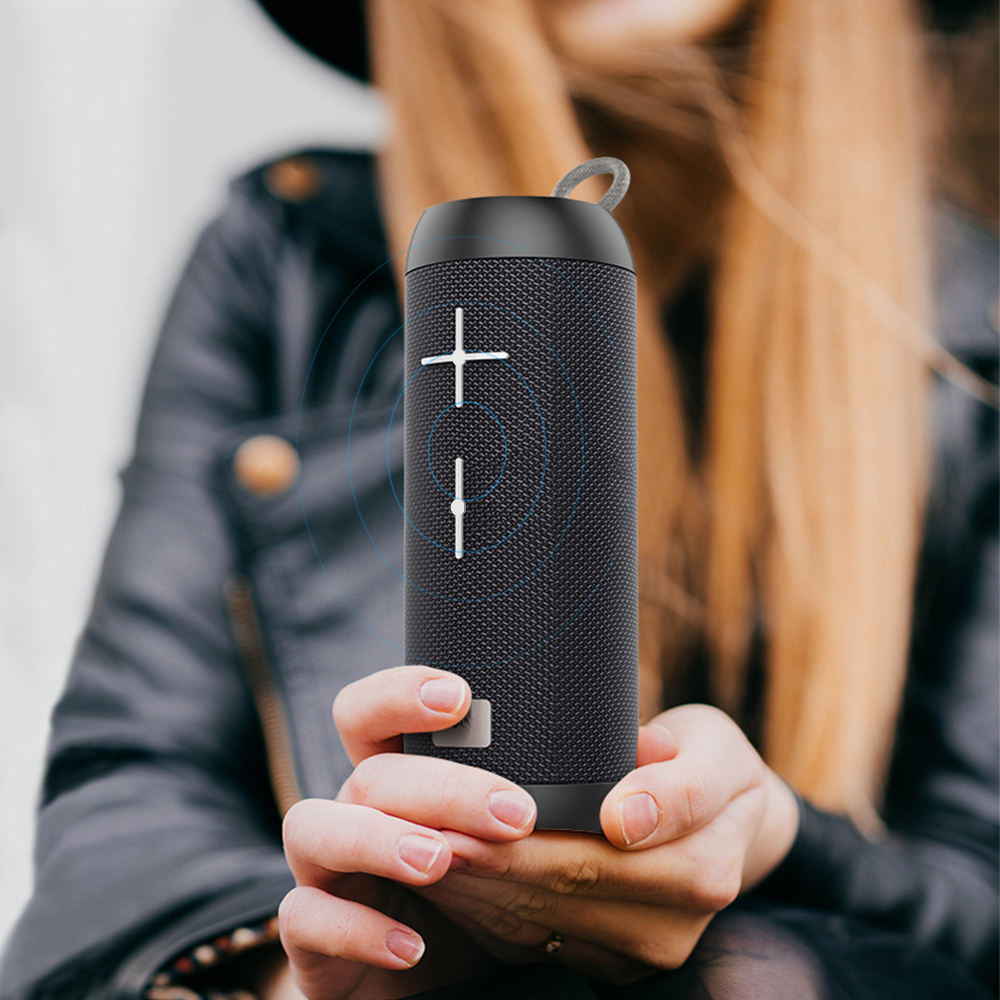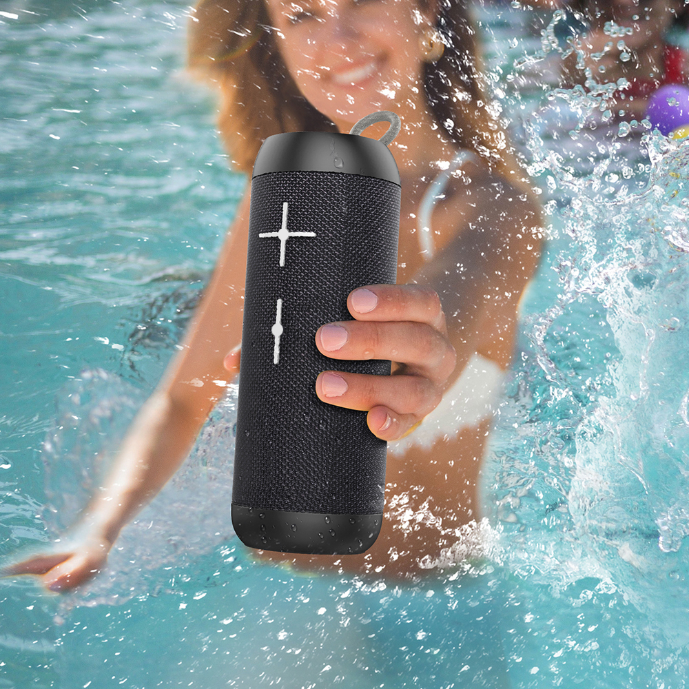 Stylish waterproof Tube shape bluetooth speaker with plus and minus sign