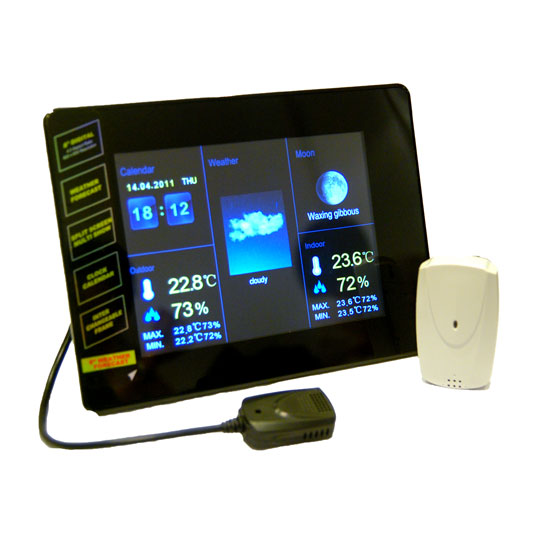 The weather station in this picture comes with a pixel display that uses simple symbols for easy recognition. It is installed with an advanced detector for accurate measurement and forecast. This weather station is a great household appliance to check the room temperature and humidity.
