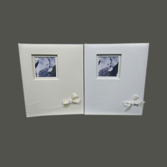 These photo albums are finely designed for you and your beloved one to remember and treasure your special, precious moments. The albums come in a plain design and with ribbon details for a touch of elegance. These wedding albums are great items to keep your treasured photographs in.