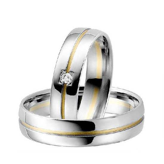 This is a wedding ring that is made of top-quality titanium or stainless steel. It is accented with a sparkling CZ stone as the centerpiece. This elegant finger ring shimmers with a highly glossy finish.