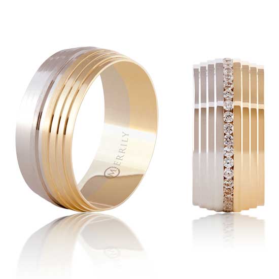 These stylish two-toned wedding rings feature minimalist designs with refined details. The timeless rings have been finely polished with a smooth finish with long lasting shine. They are great symbols for the couple's eternal love.