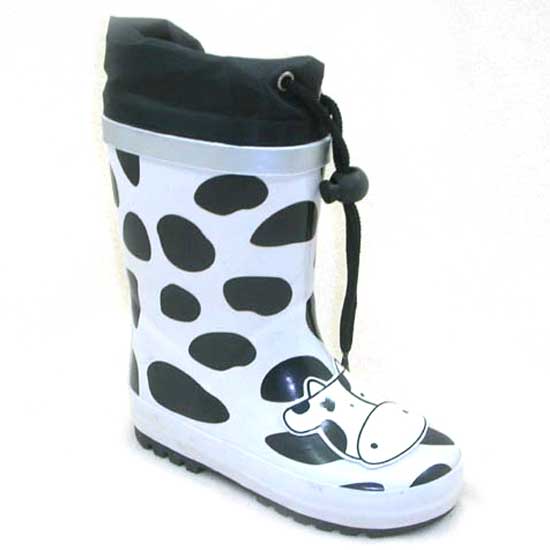 Featured is a pair of Wellington boots designed for the smaller feet. The drawstring closure offers a comfortable fit. The black-and-white design makes the pair a stylish addition to your kid's wardrobe.