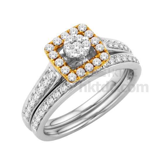 This is a dazzling finger ring that is fully paved with small white diamonds. Made of white gold, this finger ring shimmers with a highly glossy finish. This finger ring fits comfortably on your finger.